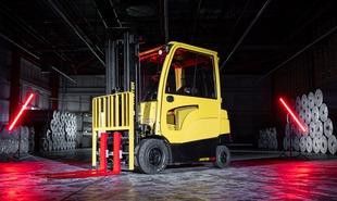 Die Show-Beleuchtung mit Lichteffekten ist sozusagen «optional». Ansonsten bieten die neuen elektrischen Gabelstapler der A-Serie, die Hyster jetzt für Anwendungen im Innen- und Aussenbereich und Lasten bis zu  3,5 t ins Rennen schickt, hohe Leistung und schonen die Umwelt.